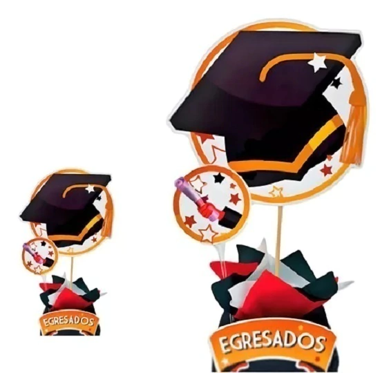 Adornos temáticos de Egresados, ideales para tortas, centros de mesa o decoración de eventos. Vienen en pack x3 unidades, con diseño llamativo, base firme y detalles brillantes que destacan en cualquier celebración de fin de curso o colación.