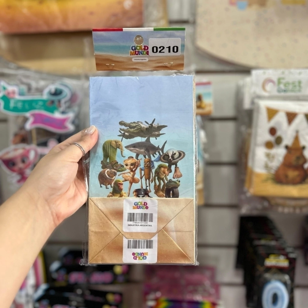 Pack de 10 bolsas de papel Tralalero Tralalá, con los personajes más delirantes del momento. Perfectas para entregar golosinas, sorpresitas o pequeños regalitos con toda la onda del universo viral más loco del cotillón 💥