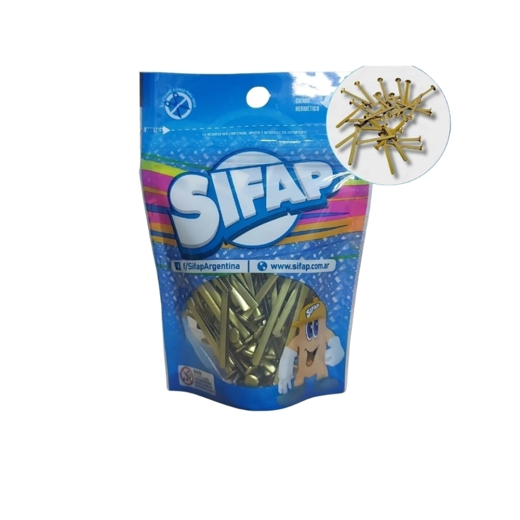 Broches mariposa dorados marca SIFAP, tamaño #4, ideales para archivar hojas, trabajos escolares, manualidades o uso en oficina.