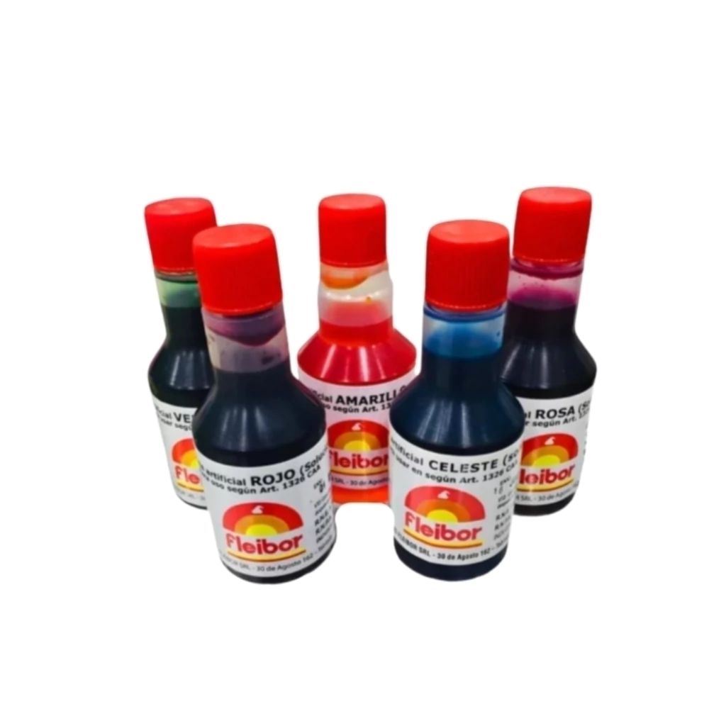 Colorante líquido Fleibor, ideal para uso en repostería, pastelería, decoración y cocina creativa.