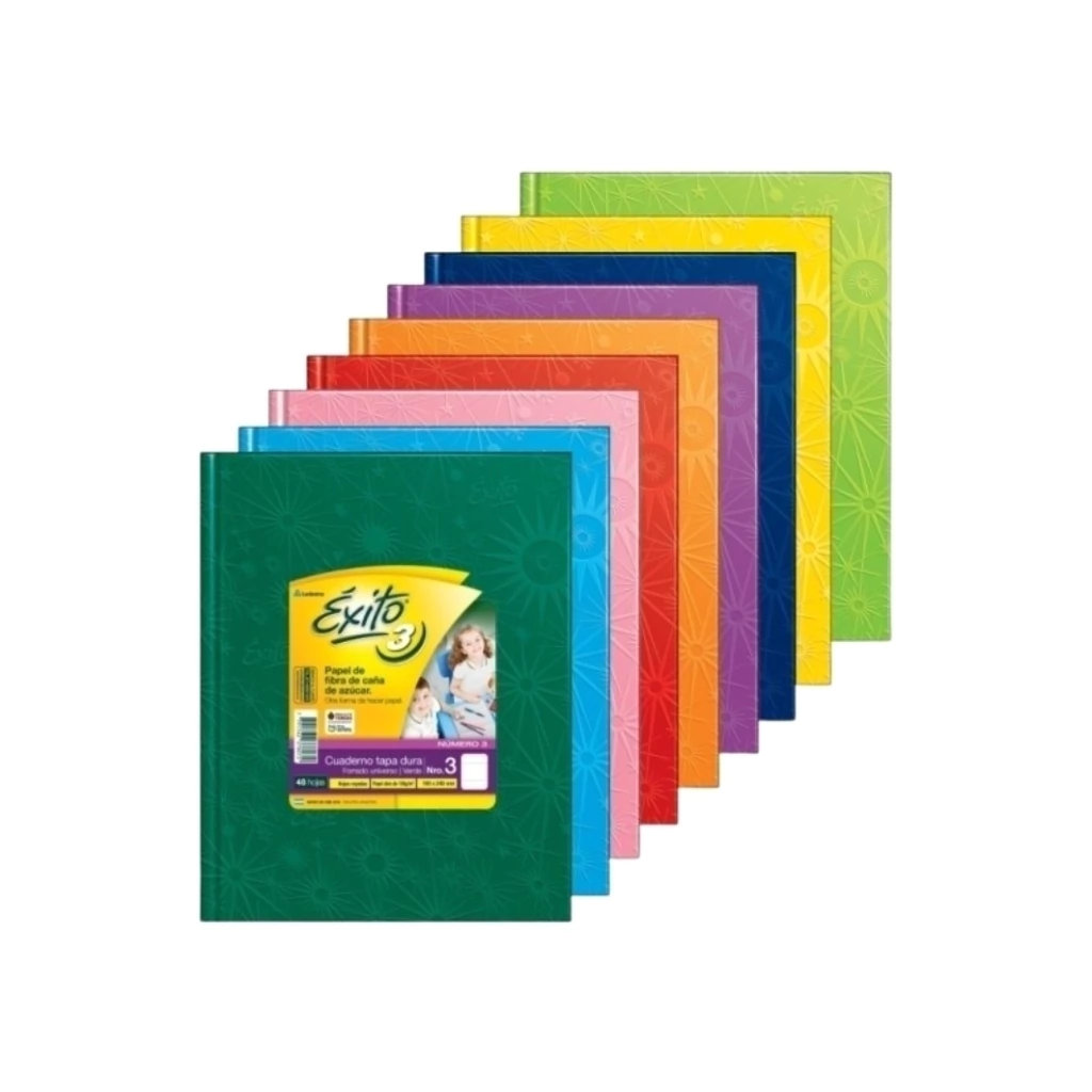 Cuaderno Éxito N°3 Tapa Dura x48 hojas cuadriculadas, fabricado con papel de caña de azúcar y hojas de excelente calidad. Ideal para el uso escolar diario en todas las materias.