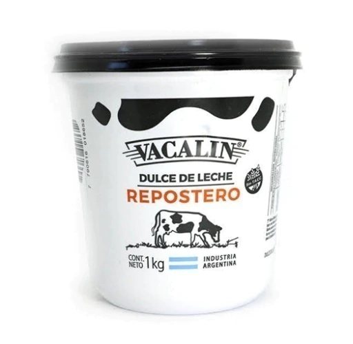 Dulce de leche Vacalín Repostero, con textura firme y sabor intenso, ideal para rellenar, decorar y hornear sin que se derrame. Resiste altas temperaturas y mantiene su cuerpo intacto.