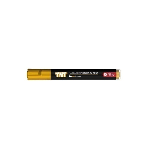 Marcador FILGO TNT con pintura al agua, punta redonda de 3.0 mm. Ideal para uso en papel, cartón, madera, piedra, vidrio, cerámica y más. Su tinta opaca, cubritiva y de secado rápido lo hace perfecto para manualidades, lettering, decoración o arte urbano.