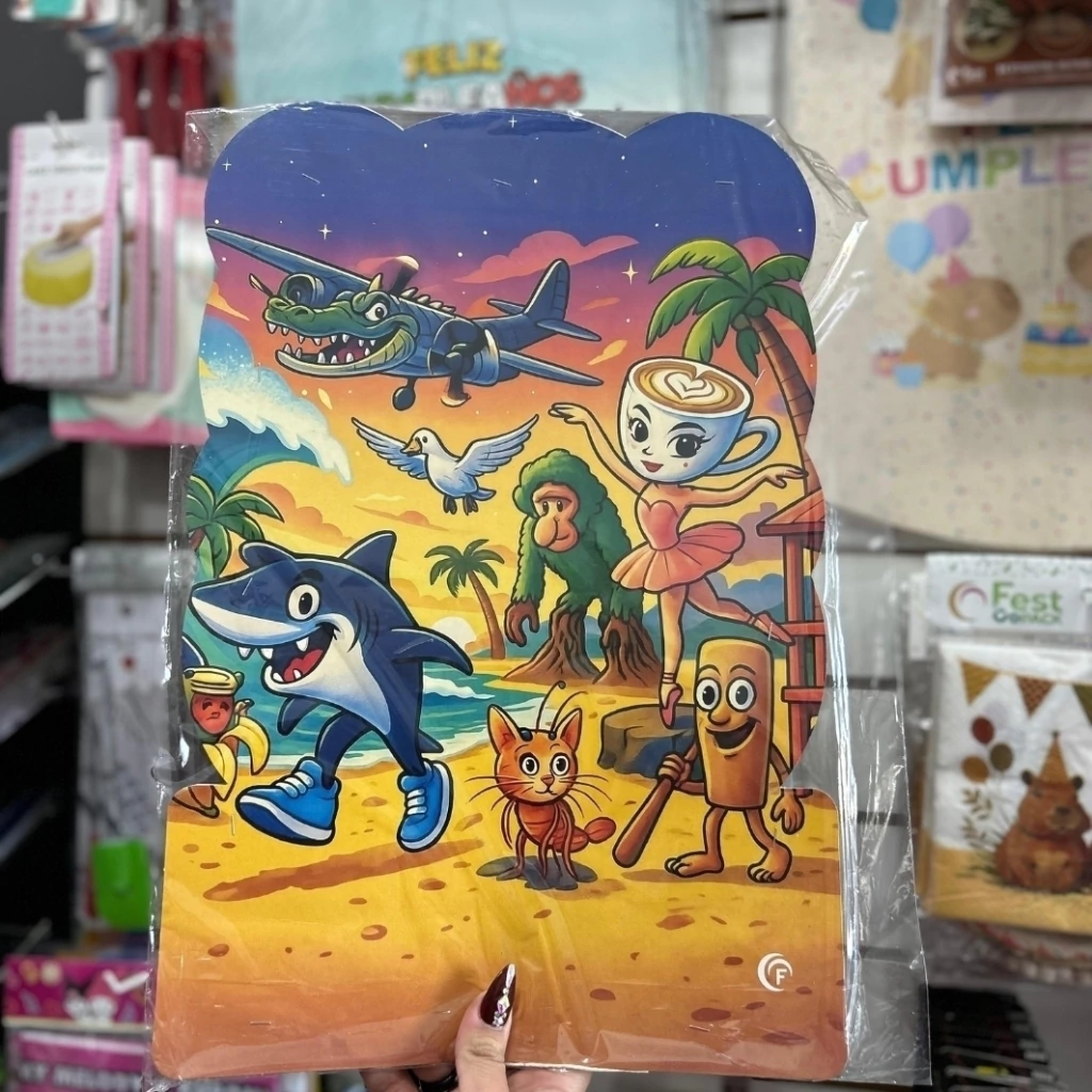 Con este diseño playero de Tralalero Tralalá, vas a tener una piñata que no pasa desapercibida. Tiburones con zapatillas, tazas con tutú, gatos con personalidad y hasta un avión cocodrilo. ¿Qué más se puede pedir? 🦈☕🐱✈️
