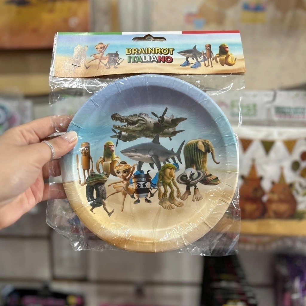 Pack de 8 platos de cartón Tralalero Tralalá, con todos los personajes que nadie pidió… ¡pero todos aman! Perfectos para fiestas con onda, humor y un toque viral que hace que hasta el postre sea un momento para reírse 😆