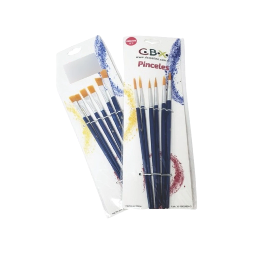 Set x6 pinceles escolares CBox, con mango de madera azul y cerdas sintéticas de alta calidad.
