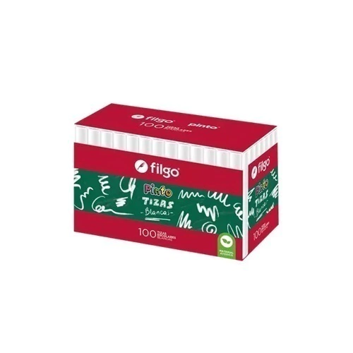 Caja cerrada de 100 tizas blancas FILGO, ideal para instituciones educativas, escuelas, profesorados y docentes.
