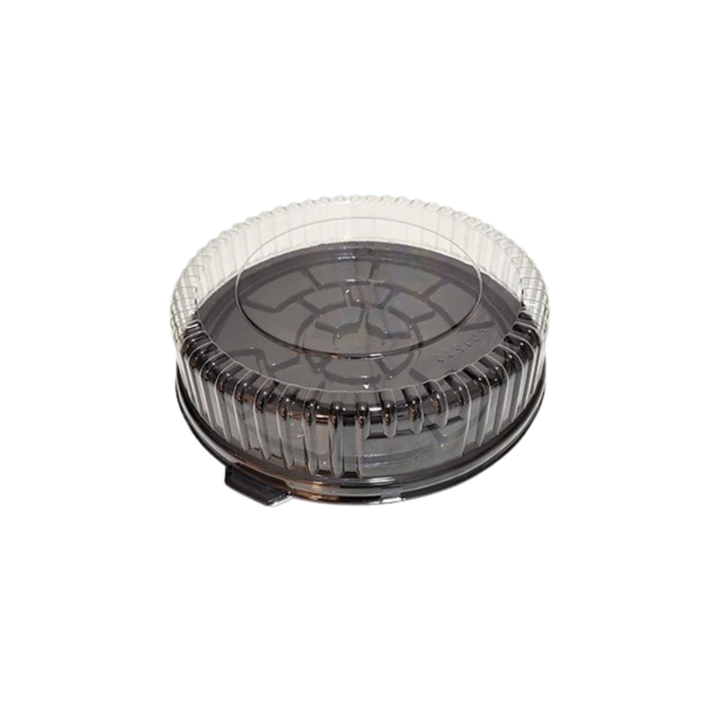 🎂 Envase para Torta con Tapa Baja – Base Negra + Cúpula Transparente